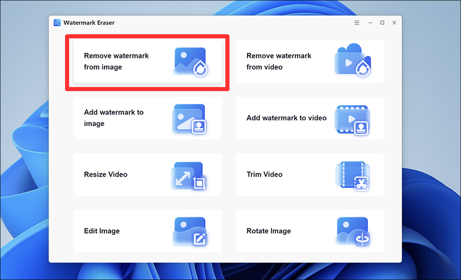 ์ผ๋จ ๊ฐ์ฅ ๋จผ์ ๋ฉ์ธ ๊ธฐ๋ฅ์ด๋ผ๊ณ ํ ์ ์๋ ์ํฐ๋งํฌ ์ง์ฐ๊ธฐ๋ฅผ ํ๊ธฐ ์ํด, Remove Watermark from Image๋ฅผ ํด๋ฆญํ๊ณ ์ด๋ฏธ์ง๋ฅผ ๋ถ์ด์ ๋ด ๋๋ค.