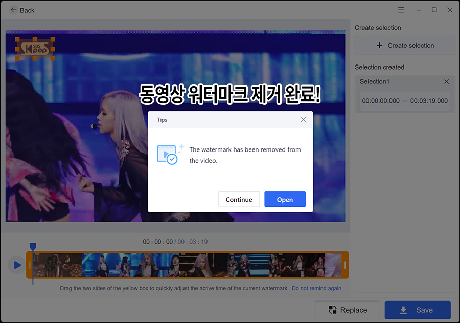 ์ด ๊ธฐ๋ฅ์ Remove watermark from video ๊ธฐ๋ฅ์ ํตํด์ ์ฌ์ฉ๊ฐ๋ฅํฉ๋๋ค. ์์์ ์ํฐ๋งํฌ๋ฅผ ์ฝ๊ฒ ์ง์์ค๋ค๋ ์ ๋ง ๊ฐ๋ฅํ ๊น? ์ฌ์ฉํด๋ณด์๋๋ฐ์.