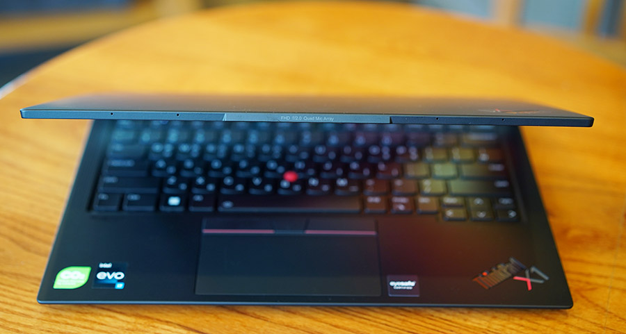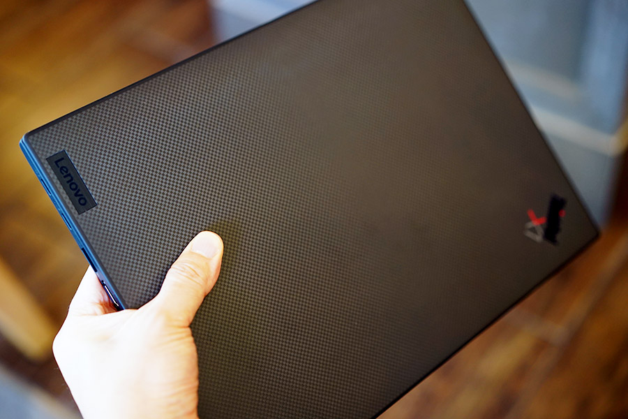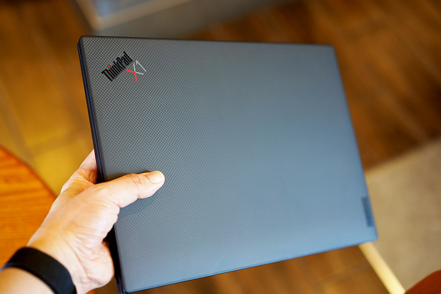 다시 돌아와서 탄소 우븐 탑커버를 가진 씽크패드 X1 카본 10세대의 윗 부분을 살펴보면...