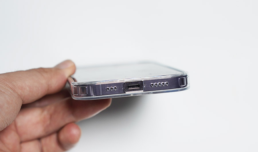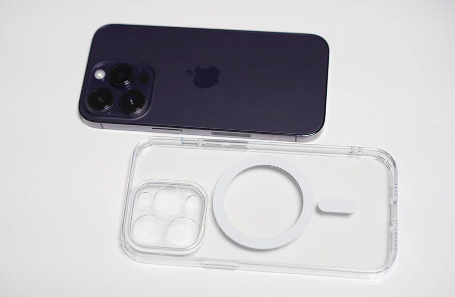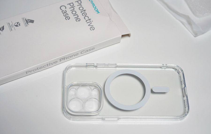 맥세이프 자력도 강한 편이고, 사진에서 확인하실 수 있는 것처럼 카메라 부분이 정밀하게 타공이 되어 있습니다. 카메라 섬만 뻥 뚤어놓은 것이 아니고, 렌즈와 라이다센서, 플래시 마이크 부분까지 다 모두 맞추어 두었고, 다른 부분만 쉴드로 처리되어 있네요.