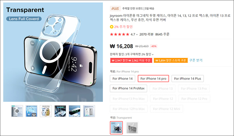 시중에 많은 케이스들이 있지만, 일단 맥세이프를 지원하고 카메라 가드까지 잘 되어 있는 아이폰14프로 케이스이기에 이번 투명 마그네틱 케이스는 조이룸 제품으로 정착을 하기로 했습니다. 아직 한국에서는 아이폰14프로가 출시 전이니, 미리 알리에서 아이폰14프로 케이스부터 주문해두시길 :)