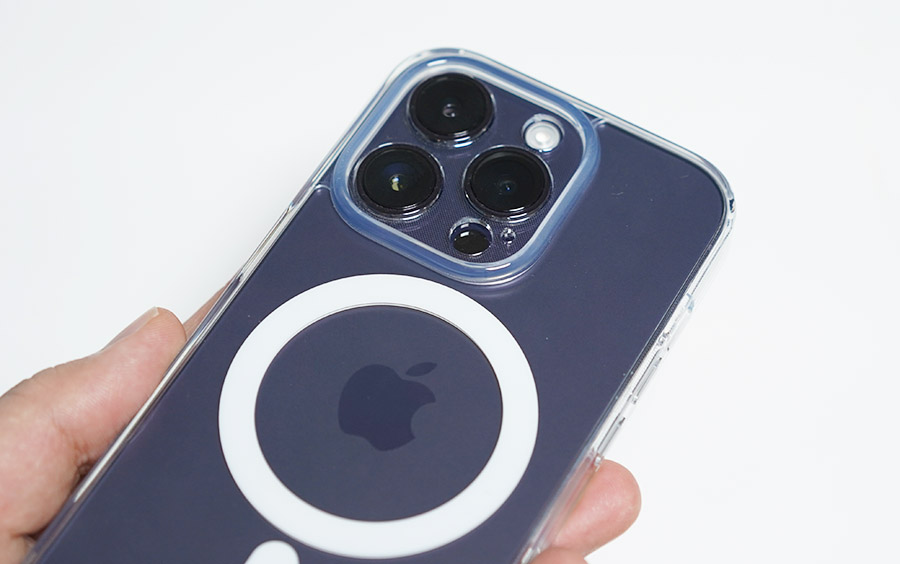 맥세이프 자력도 강한 편이고, 사진에서 확인하실 수 있는 것처럼 카메라 부분이 정밀하게 타공이 되어 있습니다. 카메라 섬만 뻥 뚤어놓은 것이 아니고, 렌즈와 라이다센서, 플래시 마이크 부분까지 다 모두 맞추어 두었고, 다른 부분만 쉴드로 처리되어 있네요.