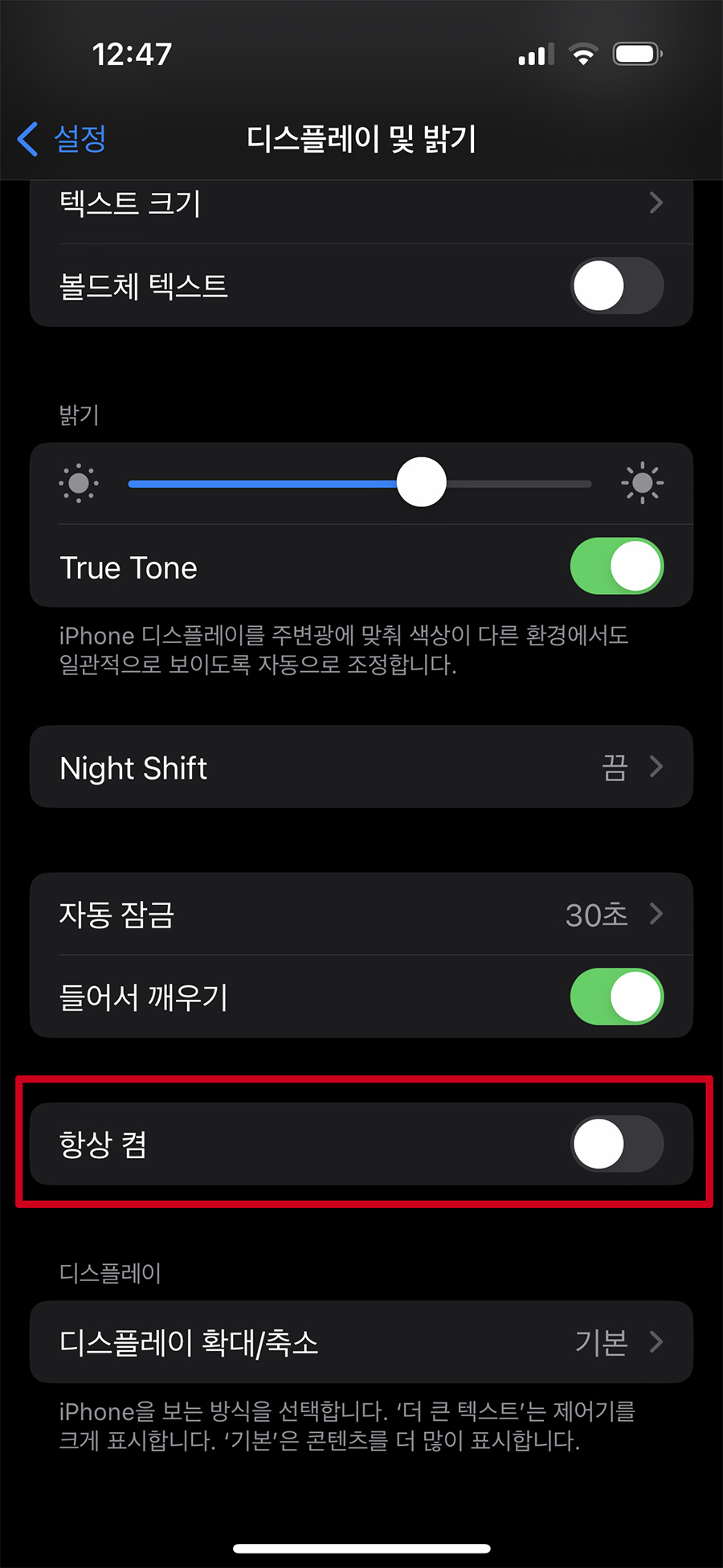 μμ΄ν°14νλ‘μμ μ΄ AOD κΈ°λ₯μ κΈ°λ³ΈμΌλ‘ νμ±νκ° λμ΄ μμ΅λλ€. μ€μ -> λμ€νλ μ΄ λ° λ°κΈ° > νμ μΌ¬ μ΅μ μ΄ λ°λ‘ κ·Έκ²μΈλ°... μ λ μμ΄ν° νλ©΄μ΄ κ³μ μΌμ Έ μλ κ²μ΄ 무μΈκ° μλ¦Ό λλ¬Έμ μΌμ Έ μλ κ² κ°μ μ κ²½μ΄ λ μ°μ΄λκ΅°μ. κ·Έλμ κΈ°λ³ΈμΌλ‘ μΌμ Έ μλ λ μμ μ°Ύμλ΄μ΄ μΌλΆλ¬ κΊΌλκ³ μ¬μ©μ νκ³ μμ΅λλ€. -_-;