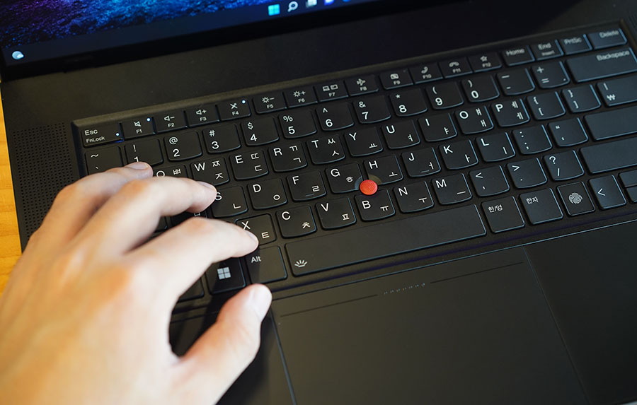 키감은 기존 씽크패드 시리즈와는 살짤 달리, 레노버 요가 노트북 시리즈의 키감을 연상시켰는데요. 요가 노트북도 키감이 좋기로 유명하기 때문에 저는 꽤 마음에 들었습니다. 쫄깃한 느낌보다는, 짧은 키 스트로크를 가지고 있어서 최근 트렌드가 많이 반영된 키감이라고 생각합니다.