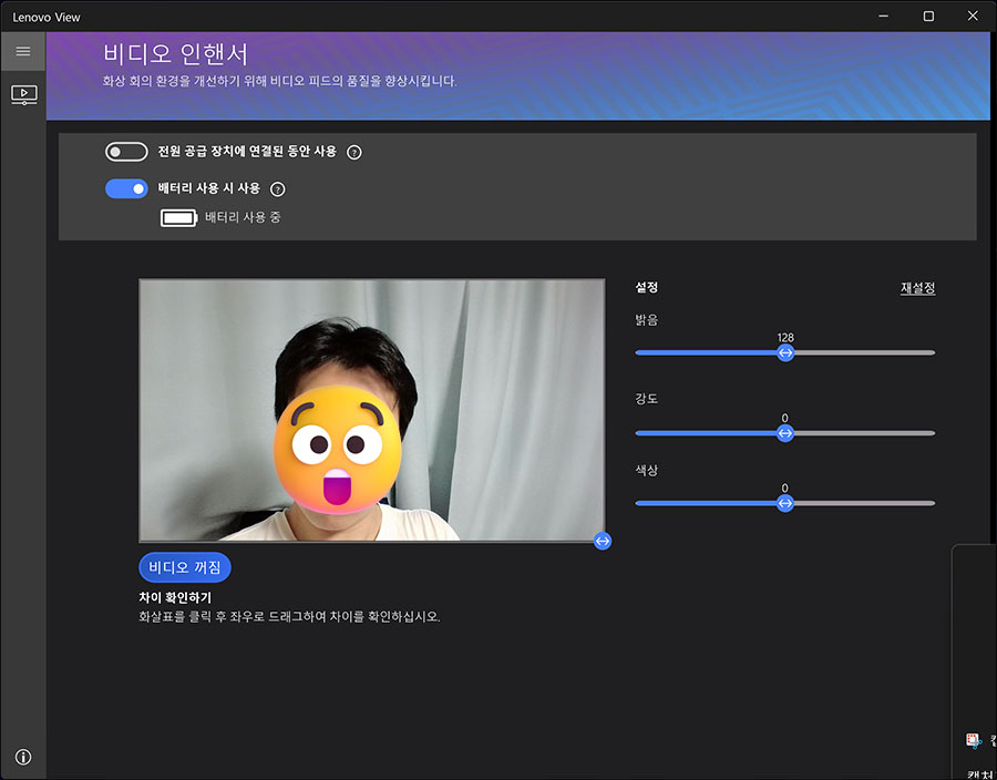 Lenovo View라는 앱을 통해서 화질 향상 튜닝이 가능했습니다. 또한 IR 센서를 통해 얼굴인식으로 윈도우 헬로 보안 기능을 활용할 수도 있죠.