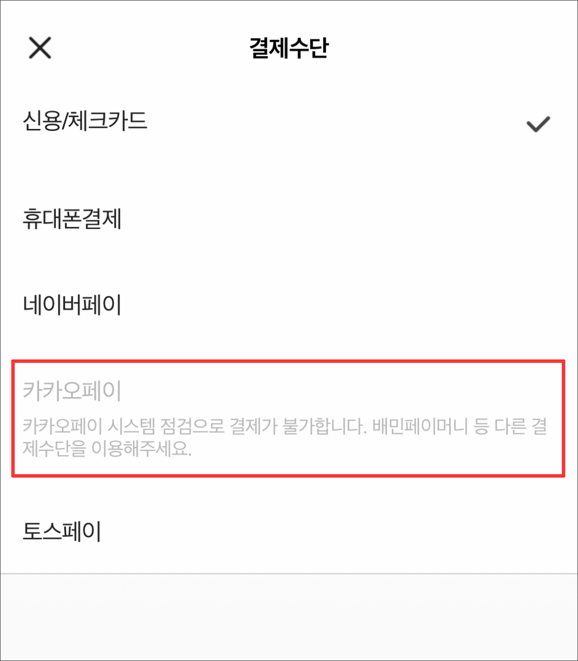 어찌되었든, 카카오뱅크나 카카오페이와 같은 핀테크 금융 서비스에도 장애가 있었기에... 배달의민족 같은 서비스에서 카카오페이를 사용할 수 없다는 것도 불편 중 하나였습니다.