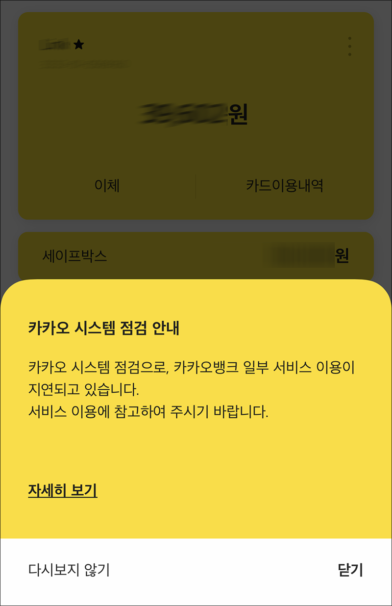 카카오페이 안되고, 뱅킁 (금융) 서비스인 카카오뱅크도 잠깐 동안 불안정했었다.
