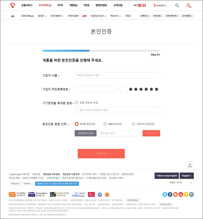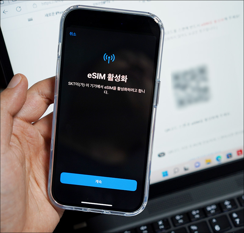 등록이 완료되면 그 다음에 다시 한번 eSIM 등록 과정을 해보시면, 이번에는 본인인증 이후에 이심 셀프개통 프로세스로 넘어갑니다.