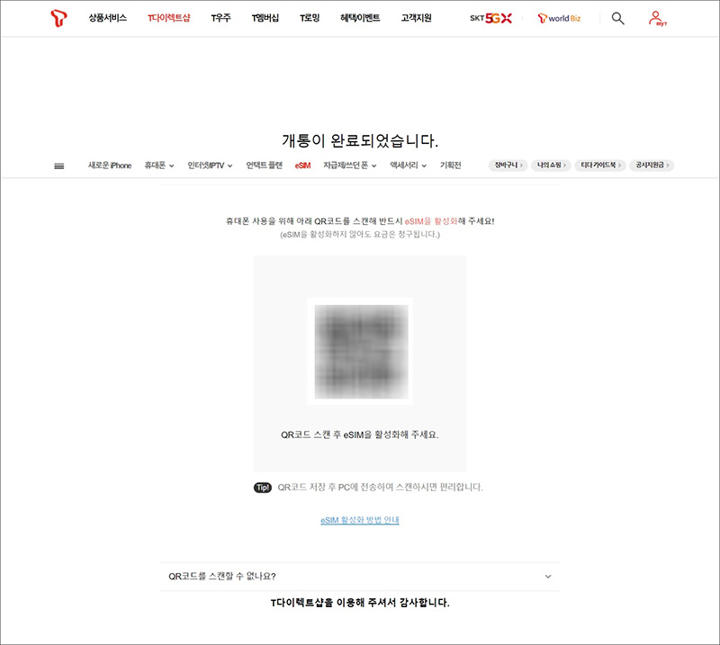 :: SK텔레콤 eSIM 셀프개통 페이지 바로가기 ::