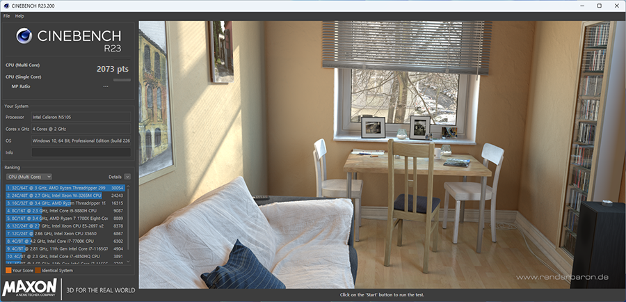 씨네벤치R23으로는 2073점이 나옵니다. 이 정도면 왠만한 사무용 컴퓨터라고 해도 손색이 없을 정도 입니다.