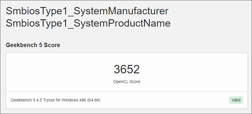 긱벤치5 멀티코어 1964점, OpenCL 3652점