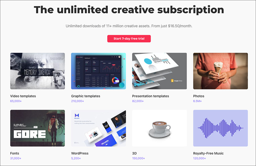 κ·Έλμ κ°μ₯ μ’μ λ°©λ²μ μλ°ν μλ¦¬λ¨ΌνΈ (Envato Elements)λΌλ μ€ν‘ 리μμ€ μ λ¬Έ μ¬μ΄νΈλ₯Ό μ¬μ©νλ κ²μ λλ€. μ ꡬλ λ£ $16.50λ‘ μμλΆν° λ€μν λ¬Έμ ν νλ¦Ώ, μ¬μ΄λ ν¨κ³Όμ λΈκΈ(BGM) κ·Έλ¦¬κ³ 4K κ³ νμ§ μμ μ€ν‘λ€λ λ€μ΄λ‘λ νμ¬ μ¬μ©ν μ μμ£ .