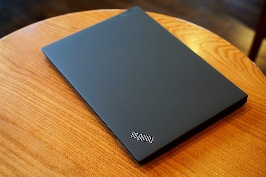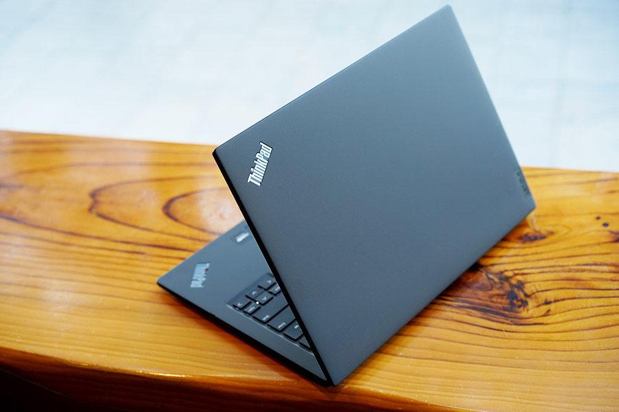 먼저 씽크패드 T14s 노트북 3세대(Gen3)의 디자인을 살펴보면, 시리즈 전통적으로 이어지는 검은색 계열을 가지고 있습니다. 마그네슘 합금과 탄소섬유를 사용해서 튼튼하지만 가벼운 외관을 자랑하고 있죠.