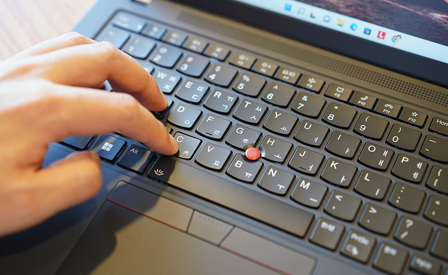 씽크패드 T14s 3세대 모델의 키감은 이전 세대 제품들보다 더 향상된 것 같습니다. 키 트래블은 살짝 줄어들었지만 탄력과 반발력이 적당해서 매우 타건감이 좋더군요. 씽크패드 시리즈들이 대부분 한번 사용해보면 중독될 만큼 좋은 키감을 가지고 있는데, 유독 씽크패드 T14s 3세대 AMD 모델은 정말 손에 착착 붙는 키감을 가지고 있는 것 같아 사용하는 내내 기분 좋은 타이핑을 할 수 있었습니다.
