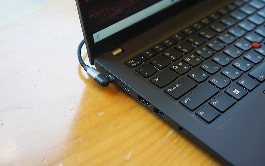 그리고 오른쪽에는 USB-A 포트가 하나 더 있고, 켄싱턴 나노락 잠금장치를 확인할 수 있습니다. 2개의 USB-A 리거시 포트와 2개의 USB Type-c 포트를 가지고 있어서, 씽크패드 T14s 3세대 모델을 사용하면서 확장성 면에서 부족했던 상황은 없는 것 같네요.