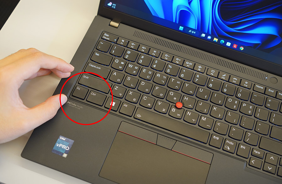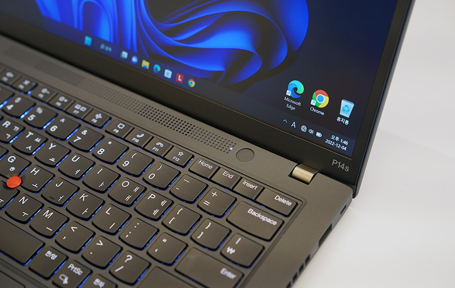 씽크패드 P14s 3세대 모델의 기본 보안기능들을 살펴보면... 가장 먼저 파워버튼에 숨겨져 있는 지문인식 센서를 찾아볼 수 있는데요.
