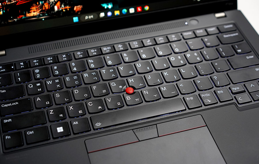 씽크패드 P14s 3세대 모델의 키감은 대부분의 씽크패드 노트북들이 그렇듯 탄력있는 키감이 매우 일품입니다. 어두운 곳에서는 자동으로 백라이팅이 들어오고, 해당 기능 역시 위에서 안내된대로 Fn+Space Bar를 눌러서 제어를 할 수 있죠. ^^
