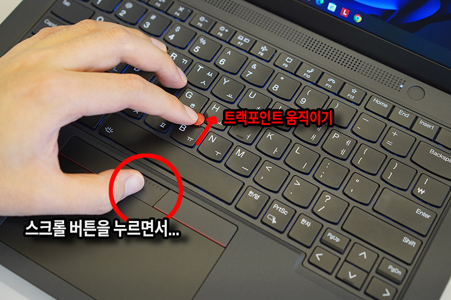 씽크패드 노트북에는 빠질 수가 없는 트랙포인트도 키보드 중앙에 위치하고 있는데요. 키보드로 타이핑을 하는 업무를 하다가 마우스를 쓰는 것보다 더 빠르게 커서를 옮겨서 제어를 할 수 있다는 점에서 익숙해지면 정말 편리한 입력도구 입니다. 아래에서 스크롤을 편하게 하는 팁도 잠깐 정리를 해봤으니 '빨콩' 트랙포인트를 활용하는 방법이 궁금하신 분들은 아래에 내용도 참고 부탁드립니다.