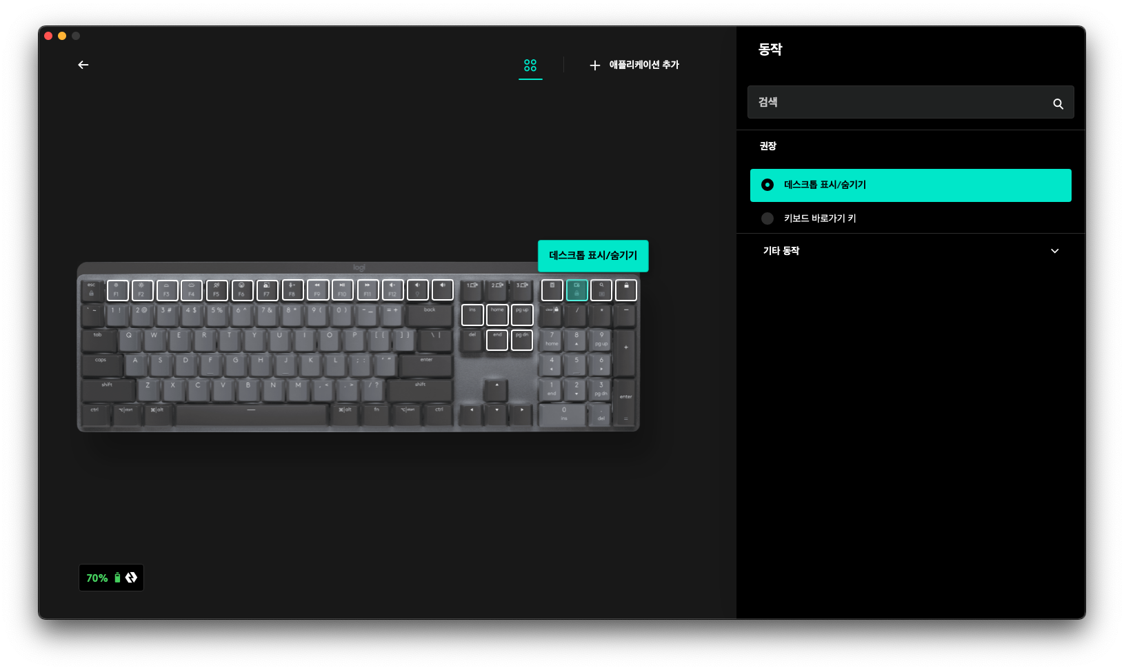 로지텍 Mechanical Mini에서는 기기 연결 페어링 연결을 제어하는 1,2,3 버튼이 F1, F2, F3의 Fn 배열로 배정이 되어 있어서 기기를 전환하다보면 Fn키 락이 걸려 있는지 아닌지가 헷갈리는 경우가 많았는데요. 로지텍 MX 메카니컬은 insert, home, Page Up키 위에 별도로 존재하고 있어서, 기기 전환을 조금 더 빠르고 직관적으로 할 수 있다는 장점이 있습니다. 또한 계산기, 바탕화면 보기, 검색(스팟라이트), 화면잠금 버튼이 바로 있어서, 맥이나 윈도우에서도 쉽게 원하는 기능을 호출할 수 있어서 좋더군요.