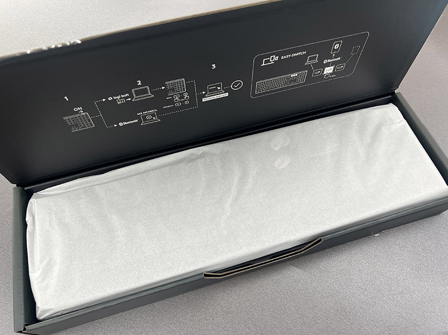 로지텍 MX Mechanical의 장점은 일단 무선이라는 것입니다. 기계식 키보드도 이제 무선이 잘 나온다는 것을 실감하게 된 제품이라고 할 수 있죠. 키감은 갈축(택타일) 방식으로, 살짝살짝 구름타법으로 치면 사무실에서 업무용으로 사용하는데 큰 지장은 없을 정도의 소음을 가지고 있습니다.