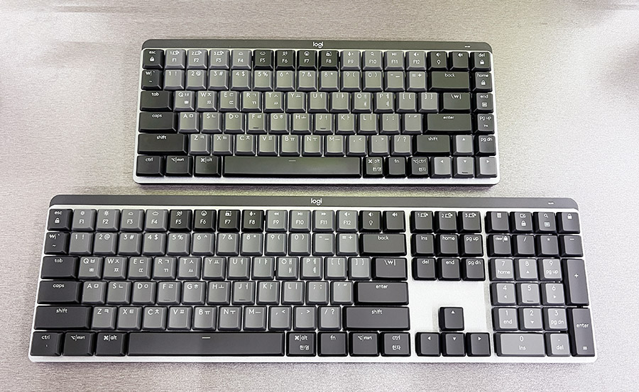MX Mechanical Mini와 비교를 해보면, 역시 키배열이 가장 먼저 눈에 들어옵니다. 오른쪽에 있는 숫자키패드 이외에도 조금 더 편하게 쓸 수 있는 단축키 구성이 있어서.. 저는 집에서는 넘버키패드가 있는 MX 메카니컬을 사용하고 있죠.