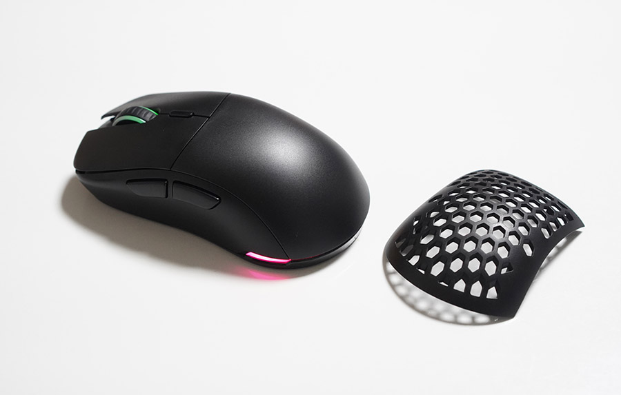 제닉스 타이탄 GX Air 마우스는 초경량 마우스로 디자인되어 기본적으로 가볍긴 하지만, 허니콤 타공 커버를 사용할 경우 더 가볍게 사용할 수 있는데요. 원한다면 아래에 보이는 것처럼...