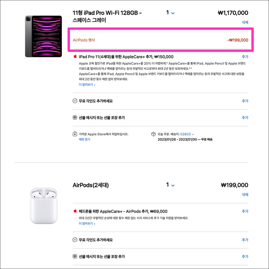 μ νν μμ΄νμ΄ λ€μ΄μλμ§ κΌ νμΈνκ³ , μμΈνγ λ©΄ AirPods νμ¬λΌκ³ μ νμκ³ 19λ§ 9μ²μμ΄ μ°¨κ°λ κ²μ μ μ μμ΅λλ€. μ΄λ κ² 117λ§μμ μμ΄ν¨λ νλ‘ 11μΈμΉλ₯Ό ꡬμ νλ©΄μ μμ΄νμ 무λ£λ‘ νλν μ μλκ±°μ£ . μ΄μ κ²°μ λ§ νλ©΄λ©λλ€.