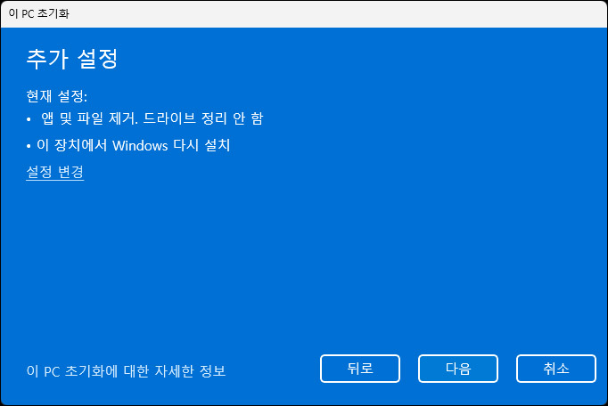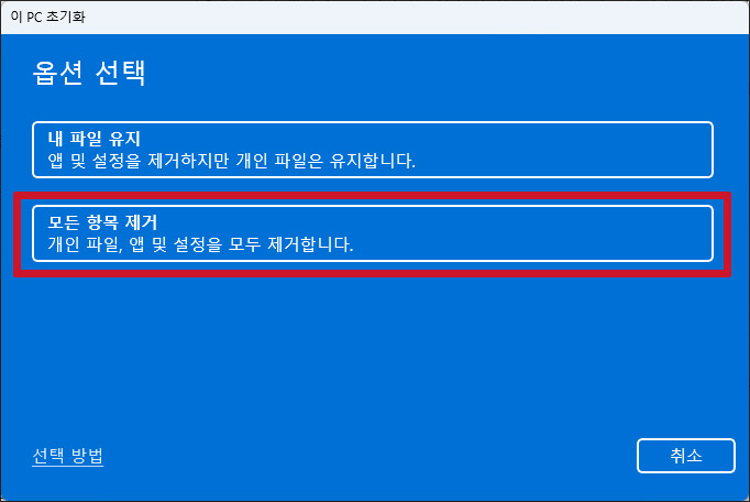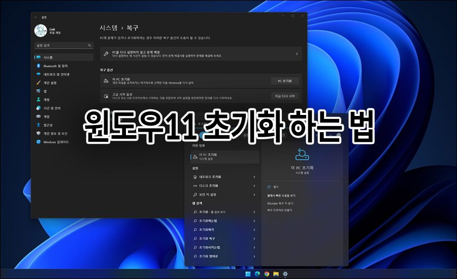 ์๋์ฐ11 '์ด PC ์ด๊ธฐํ'ํ๋ ๋ฐฉ๋ฒ (๋ชจ๋ ํ์ผ ์ง์ฐ๊ธฐ)
