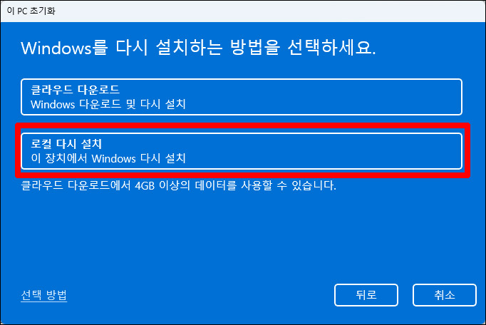 ์๋์ฐ๋ ๋์ค์ ์ฝ๊ฒ ์ ๋ฐ์ดํธํ ์ ์์ผ๋ ์ฌ๊ธฐ์๋ '๋ก์ปฌ ๋ค์ ์ค์น'๋ฅผ ํด๋ฆญํ๊ณ ๊ณ์ ์งํํ๋ค๋ณด๋ฉด ๋ ธํธ๋ถPC๋ผ ํ๋๋ผ๋ ์ ์ ์ผ์ด๋ธ์ ์ฐ๊ฒฐํด์ผ ์งํ์ด ๋๋ฉฐ, ์ฌ๋ฌ๋ฒ ์ฌ๋ถํ ์ ํ ๋ค์ ์ปดํจํฐ๋ฅผ ์ฒ์ ๊ตฌ์ ํ์ ๋์ฒ๋ผ ์ด๊ธฐํ๊ฐ ๋ฉ๋๋ค. ์ด๊ธฐํ ์๋ฃ์ ๋ชจ๋ ํ์ผ์ด ์์ด์ง๋ ๊ผญ ์ค์ํ ํ์ผ์ ๋ฐ๋ก ๋ฐฑ์ ์ ํด๋์๊ธธ ๋ฐ๋๋๋ค.