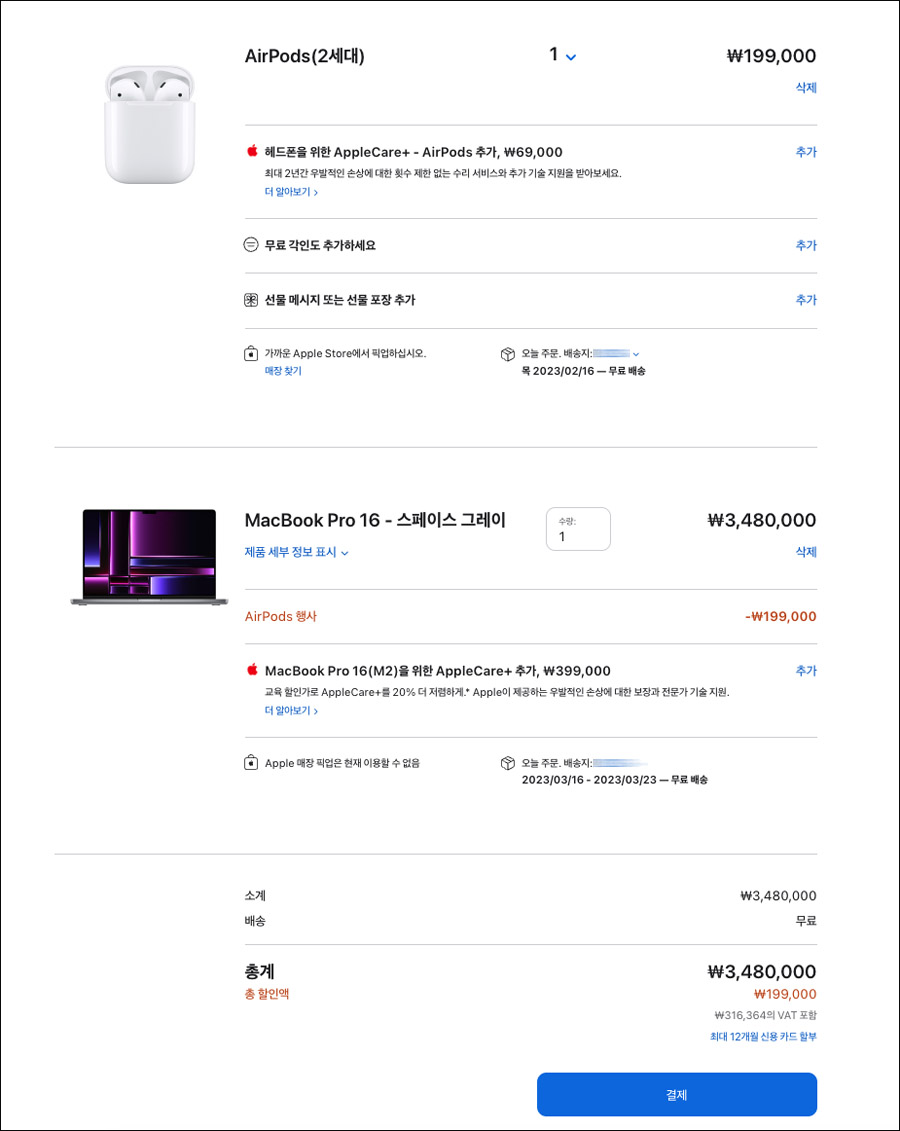 ์ด๋ ๊ฒ ๊ฒฌ์ ์ ๋ฝ์๋ณด๋ฉด ์์ดํ์ ํ๋ ๋ฌด๋ฃ๋ก ๋ฐ๊ณ , M2 PRO ๋งฅ๋ถํ๋ก 16์ธ์น (12์ฝ์ด CPU, 19์ฝ์ด GPU, 16GB ๋จ, 1TB SSD)๋ฅผ ๊ตฌ์ ํ ๋ ๋ค์ด๊ฐ๋ ๋น์ฉ์ 348๋ง์์ด๋ค์.