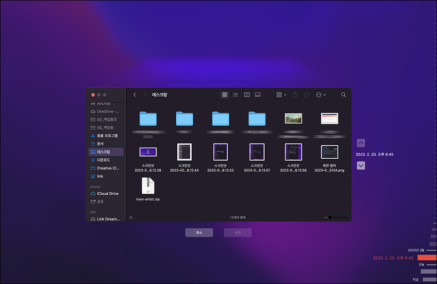 ์ค๋๋ง์ ๋งฅ(mac)์ ์ฌ์ฉํ๋ฉด์ ํ์๋จธ์ (TimeMachine) ๋ฐฑ์ ์ ๋ค์ ์ฌ์ฉํด๋ณด๊ฒ ๋์์ต๋๋ค.