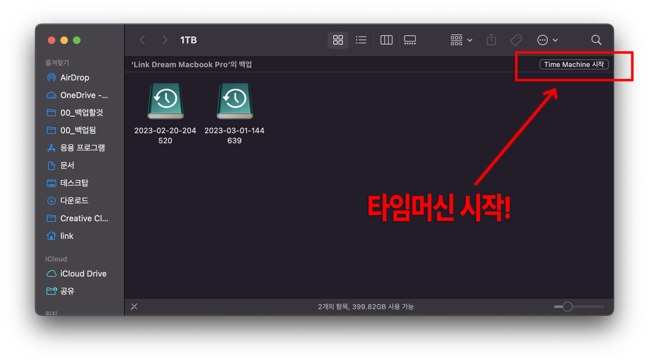 ๊ฐ์ฅ ๋จผ์ ๋งฅ์์ ํ์๋จธ์ ๋ฐฑ์ ์ ์ค์ ํด๋ณด๊ฒ ์ต๋๋ค. Ventura์์๋ ํ์๋จธ์ ๋ฐฑ์ ์ ์ค์ ํ๋ ๊ณผ์ ์ด ์กฐ๊ธ ๋ฌ๋ผ์ก๋๊ตฐ์.