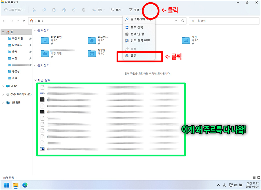 μ΅κ·Ό λ¬Έμλ€μ 'κ°μΈ μ 보 보νΈ' νλͺ©μμ νμΌ νμκΈ° κΈ°λ‘ μ§μ°κΈ° -> 'μ§μ°κΈ°'λ₯Ό ν΄λ¦νλ©΄ νμ€ν λ¦¬κ° μ κ±°λ©λλ€. μΌλ¨ μ΄λ¬ν μ΅κ·Ό μ¬μ© νμΌ λ¦¬μ€νΈλ€μ΄ μ§μμ μΌλ‘ μμ¬μ νμκΈ°λ₯Ό μ΄ λ λ§λ€ 보μ¬μ§λ κ²μ΄ μ«μ΄μ μ€μ μ νλ¬ λ€μ΄μ¨ κ²μ΄κΈ° λλ¬Έμ μμΌλ‘ μ΅κ·Ό λ¬Έμκ° κ³μ 보μ΄λ κ²μ λ°©μ§νκΈ° μν΄ 'μ΅κ·Όμ μ¬μ©ν νμΌ νμ', 'μμ£Ό μ¬μ©νλ ν΄λ νμ', 'Office.comμμ νμΌ νμ'λ₯Ό λͺ¨λ 체ν¬ν΄μ ν©λλ€. μ΄λ κ² νλ©΄, λ³΄λ€ λ κΉλνκ² νμκΈ°λ₯Ό μΈ μ μμ΅λλ€.