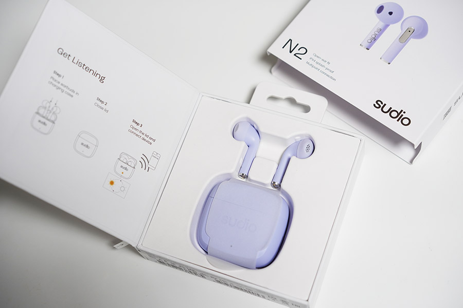 요렇게 보면 안에 보라색 Sudio N2 이어폰이 들어있습니다.