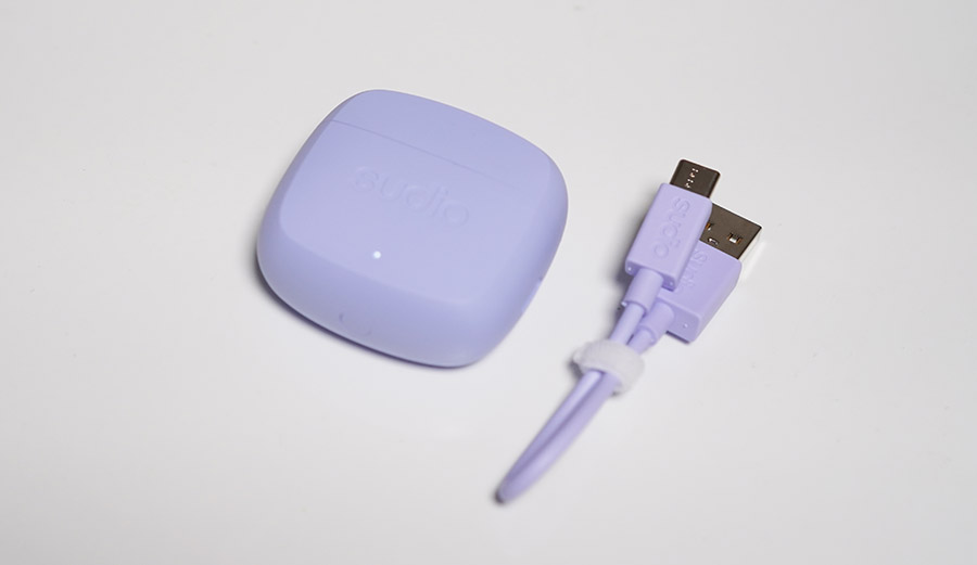 수디오 N2 구성품은 위와 같은데요. 사용방법을 알아볼 수 있는 메뉴얼, 충전을 할 때 필요한 USB A to C 케이블, 이어버드 본체, 그리고 충전을 위한 케이스 입니다.