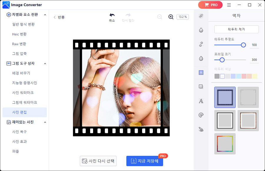 ์ถ๊ฐ์ ์ผ๋ก ์ฌ์ง์ด๋ฏธ์ง๋ฅผ ๊ทธ๋ฆผ ์ฒ๋ผ ๋ง๋ค๊ฑฐ๋, ๋์ด๋ฅผ ์ด๋ฆฌ๊ฒ ๋๋ ๋์ด๋ค๊ฒ ๋ง๋ค๊ธฐ, ๋จ์๋ฅผ ์ฌ์์ฒ๋ผ ๋๋ ๊ทธ ๋ฐ๋๋ก ์ฌ์๋ฅผ ๋จ์์ฒ๋ผ ๋ฐ๊ฟ์ฃผ๋ ์ฌ๋ฐ๋ ์ฌ์ง ํจ๊ณผ ํํฐ๋ค๋ ์์ต๋๋ค.