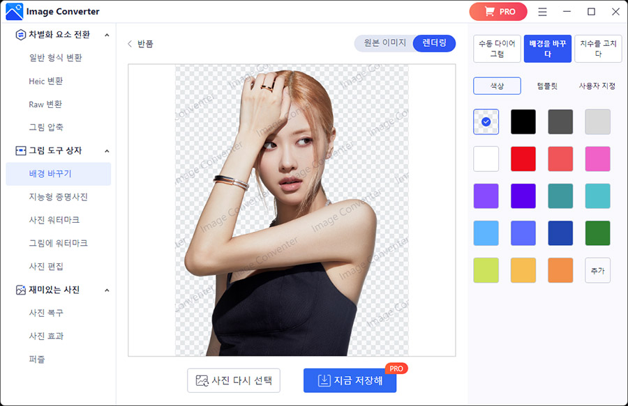 ์์ ๊ฐ์ด ํ๋ฐฑ์ฌ์ง์ ๋ฉ์ง๊ฒ ์ปฌ๋ฌ์ฌ์ง์ผ๋ก ๋ณ๊ฒฝ์ ํด์ค ๊ฒ์ ๋ณผ ์ ์์ต๋๋ค. ^^