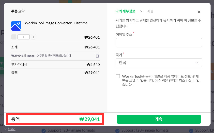 ๋ฌด๋ฃ ์ฒดํ ๋ฒ์ ์์๋ HEIC ์ด๋ฏธ์ง ํ์ผ์์ JPG ๋๋ PNG ๋ฑ์ผ๋ก ๋ณํ๋ ์ฌ์ง์ ์ํฐ๋งํฌ๊ฐ ๋ค์ด๊ฐ ์๊ณ , ๋ง์ HEIC ์ด๋ฏธ์ง ํ์ผ์ ๋ณํํ ๋ ์ ๋ฃ ๋ผ์ด์ผ์ค๊ฐ ํ์ํ๋ค๊ณ ์๋ด๊ฐ ๋จ๊ณ ์์ผ๋, ํด๋น ๊ธฐ๋ฅ์ ์์ฃผ ์ฌ์ฉํ๋ค๋ฉด WorkinTool Image Converter ๋ผ์ด์ผ์ค๋ฅผ ๊ตฌ์ ํด์ ์ฌ์ฉํด๋ณด๋ ๊ฒ๋ ์ข์ ๊ฒ ๊ฐ์ต๋๋ค.