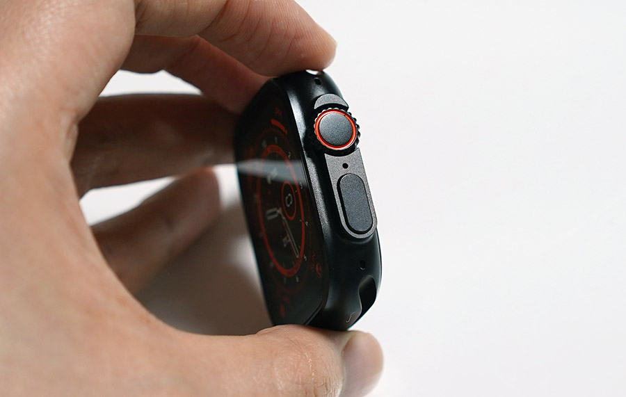 오른쪽에도 크라운 휠과 버튼이 있습니다.