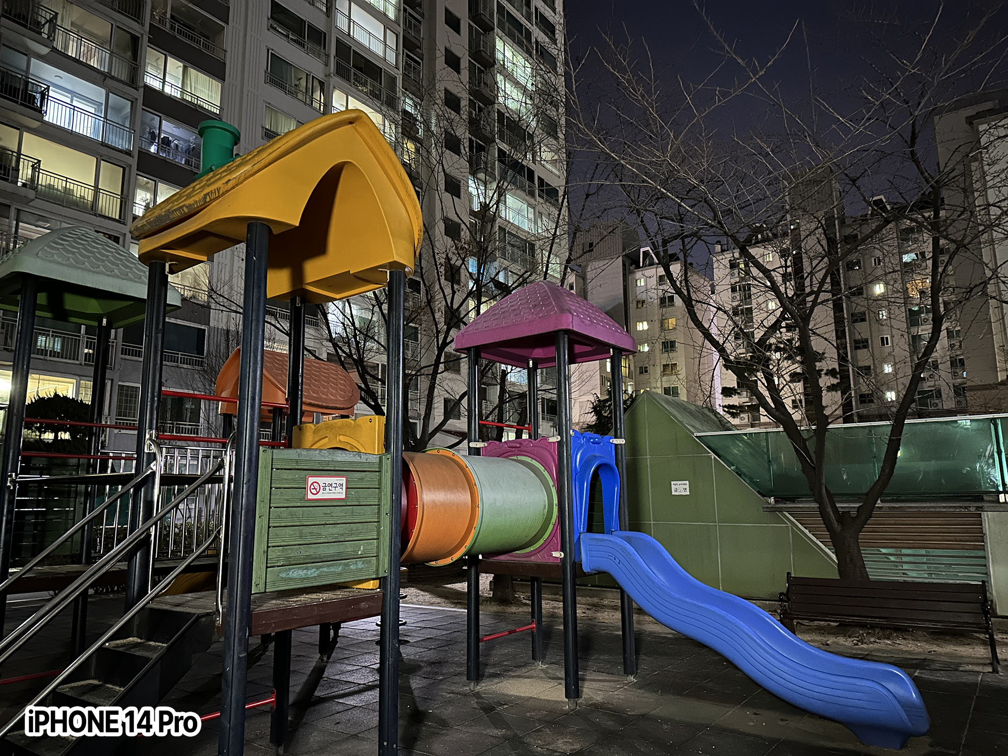 마찬가지로 갤럭시S23 울트라가 야간 사진 촬영에서는 조금 더 채도가 살아있고, 깨끗(?)하게 잘 나오는 것 같습니다. 반면 아이폰은 현실감 그대로 적나라(?)하게 다 표현을 해주는 것 같구요.