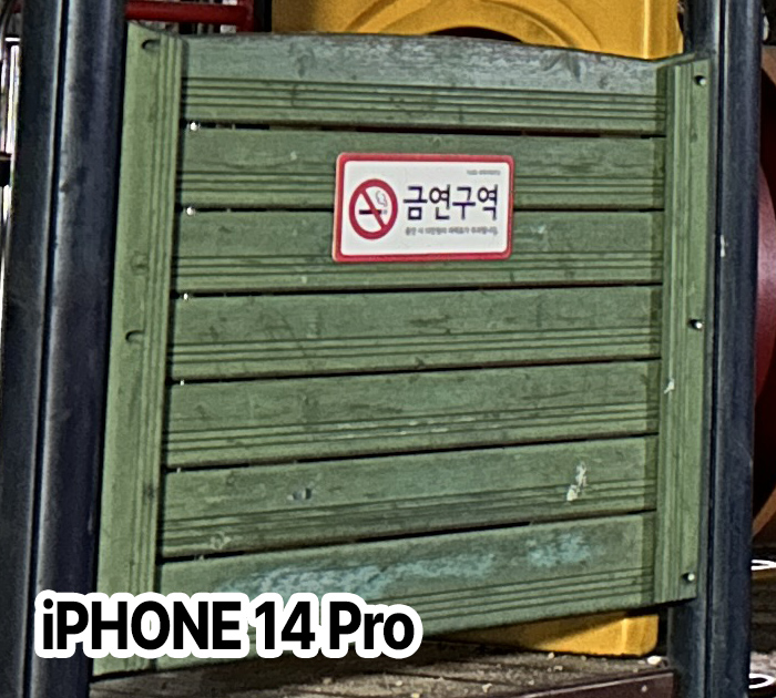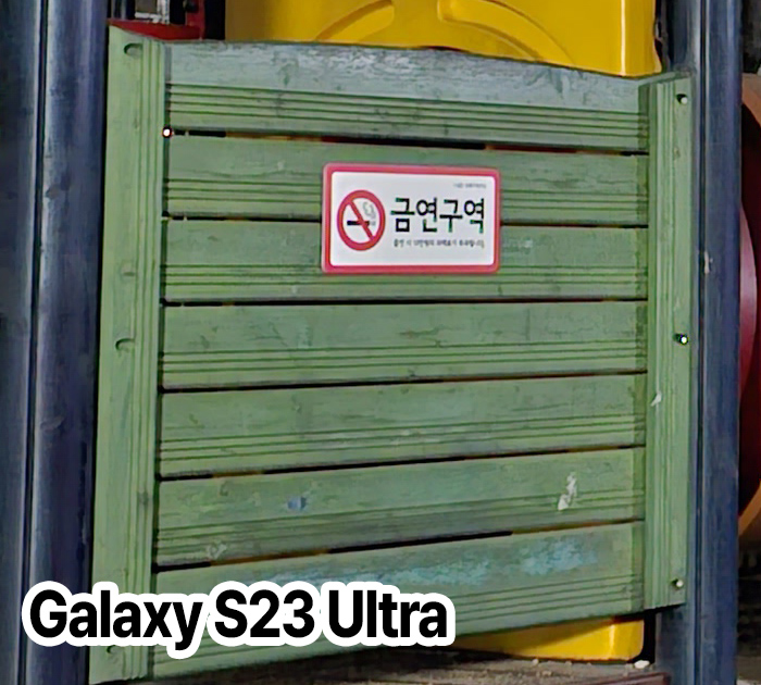 100% 크롭 사진으로 비교해보면 이러한 특징을 더 잘 구별할 수 있습니다. 아이폰은 딥퓨전 처리 때문인지 과고하게 디테일을 살려서 재질을 그대로 표현해주는가 하면, 갤럭시S23 울트라는 무언가 자동 후처리 보정이 잘 들어가 있어서 사진의 컬러감이나 분위기가 화사하다는 장점이 있어 보입니다.