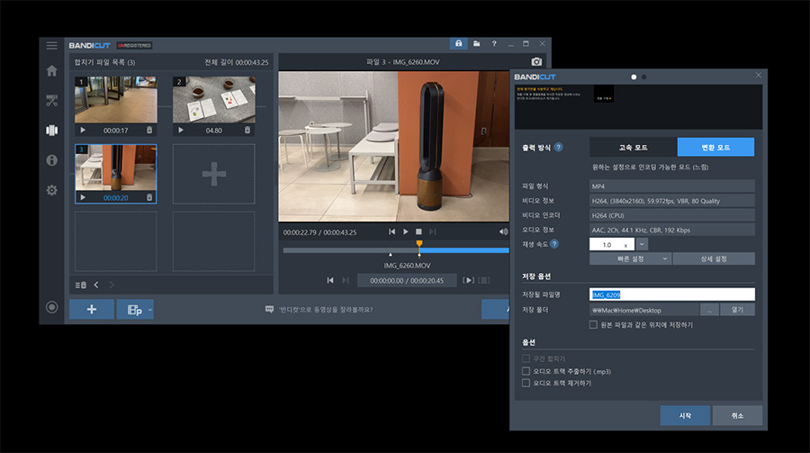 ๋ฐ๋์ปท์ ๊ตญ๋ด์์ ๊ฐ๋ฐ๋ ์ํํธ์จ์ด๋ก ๊ณ ๊ธ ๊ธฐ๋ฅ ๋ณด๋ค๋ ์์ ํ์ผ์ ํธ์งํ๊ณ ์ถ์ ๋ ๊ธฐ๋ณธ์ ์ผ๋ก ๊ฐ์ฅ ๋ง์ด ์ฌ์ฉ๋๋ ์๋ฅด๊ธฐ, ๋๋๊ธฐ(๋ถ๋ฆฌํ๊ธฐ), ๋๋ ํฉ์น๊ธฐ๋ฅผ ์ฝ๊ฒ ํ ์ ์๋ ์์ ํธ์ง ์ํํธ์จ์ด๋ก ํนํ๋์ด ์์ต๋๋ค.