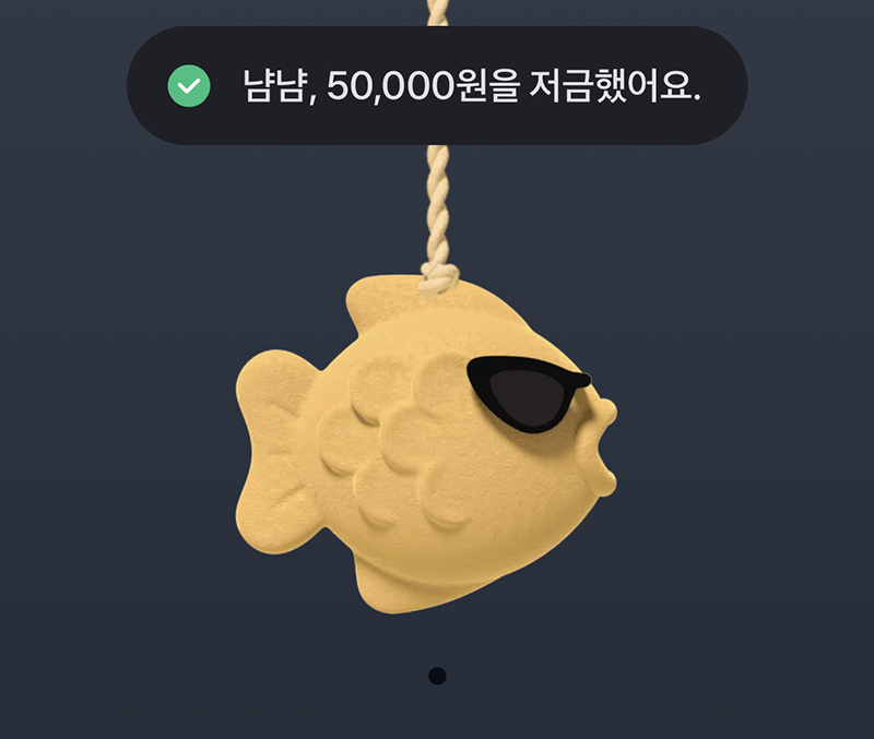 토스뱅크 상품기획팀이 뭔가 재미요소를 주려고 많은 노력은 한 것 같은데... 추가 납입 (입금)을 할 때마다 굴비가 내려오는 애니메이션이 있고... 테이블 위에 반찬 아이콘 그림을 바꿀 수는 있는데... 뭔가 딱히 재밌는 인터렉션은 아직 못봤습니다. 별다른 의미는 없는 것 같네요. ㅎㅎ