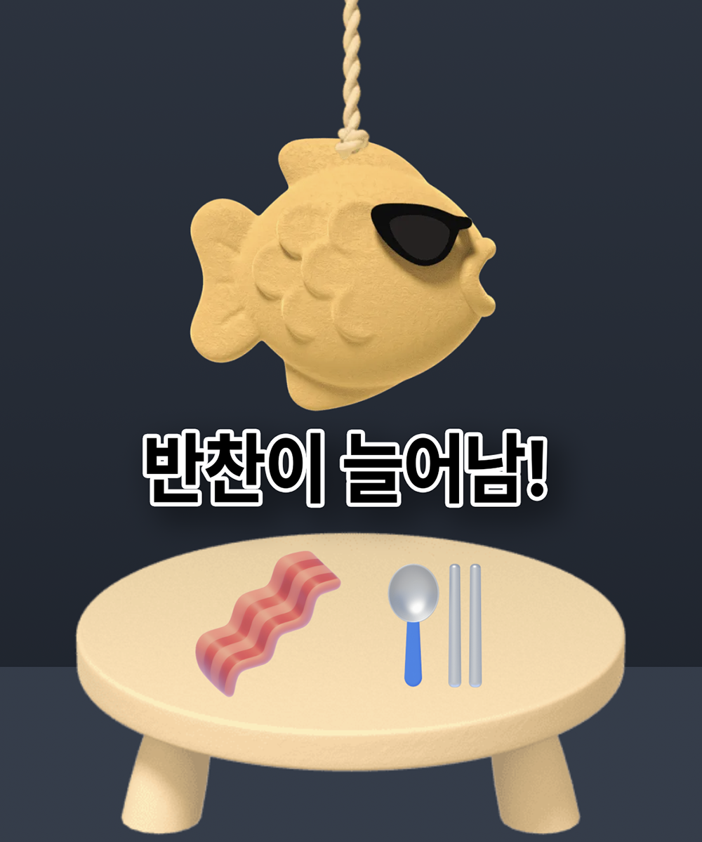 하루에 3번 정도 입금을 하면 붕어빵(?)이 아래로 내려오고, 4번이 채워지면 반찬이 개수가 불어나네요. 총 4개까지... 그리고 무한반복인듯 ㅎㅎ :)
