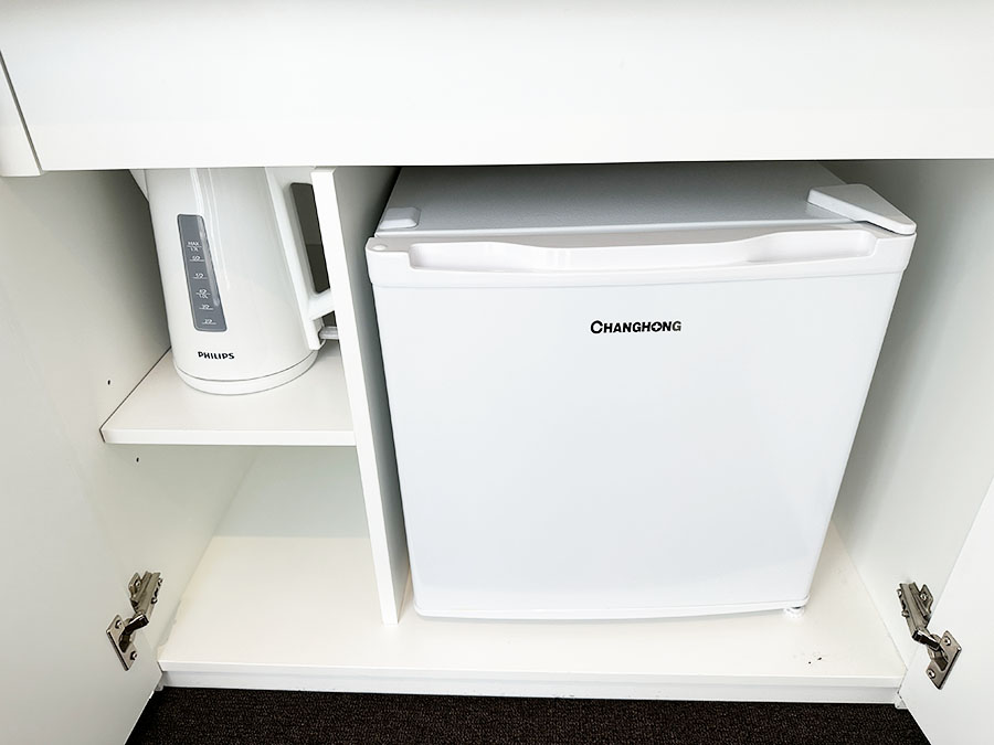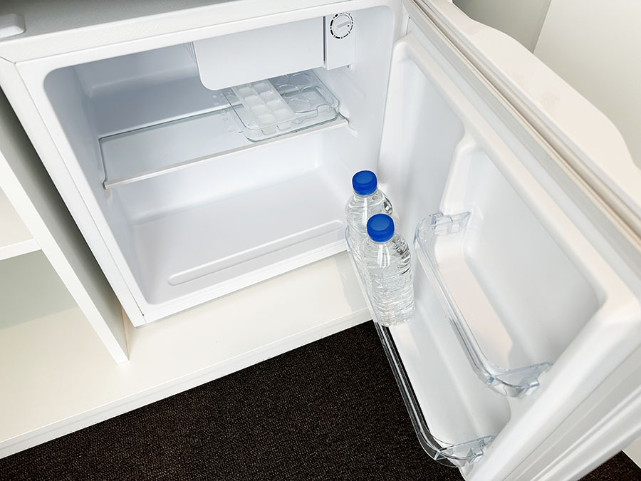그리고 기본으로 생수 2병이 냉장고 안에 어매니티로 들어있습니다. 이곳은 부억 시설은 없어서 음식을 요리할 수는 없겠더군요. (전자렌지도 방에 있는 것이 아니라 2층 라운지에 있다고 합니다)