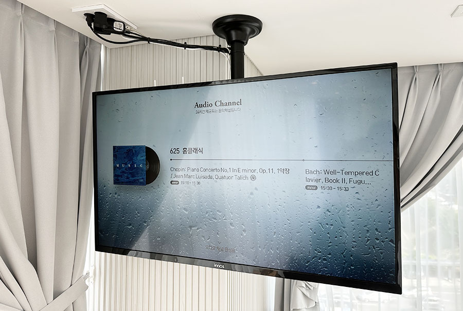 처음 방에 들어갔을 때 클래식 음악이 틀어져 있어서 매우 느낌이 좋았습니다. TV를 자세히 살펴보니..