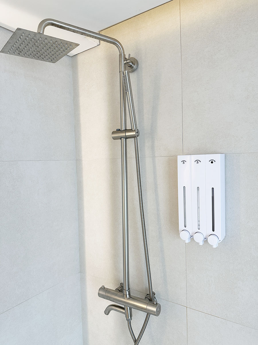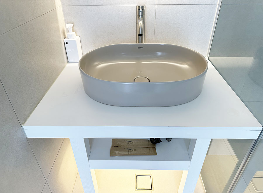 치약 칫솔이 제공이 되고, 뜨거운 물도 잘 나왔습니다. 처음 써보는 샤워기라서 온수를 조절하는 방식이 익숙하지가 않았는데, 유사한 샤워기를 사용해보신 분들이라면 어렵지 않게 사용하실 수 있겠더군요.