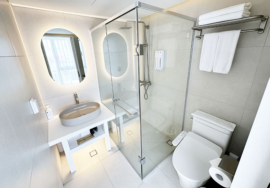 화장실은 꽤 깨끗한 편이고, 여러가지로 만족스럽습니다. 다만 제가 묵었던 룸은 샤워를 할 때 배수가 잘 되지 않아서 샤워를 하고 나오면 화장실 전체가 물바다가 되더군요. ㅎㅎ