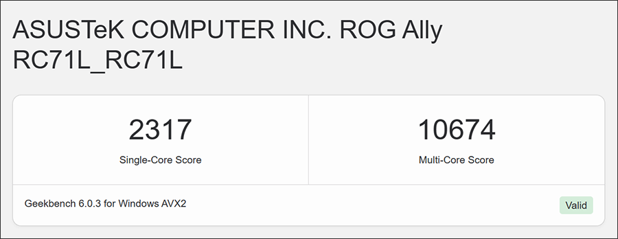 긱벤치6 기준으로 멀티코어 점수는 10674점 (싱글코어는 2317점)