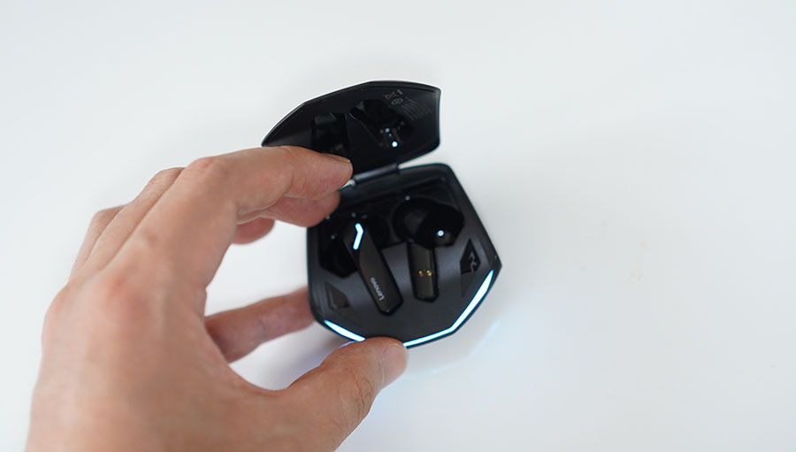착용한 상태에서 우측 이어버드를 2초이상 터치를 하면 게임모드로 전환됩니다. 다시 2초동안 누르고 있으면 일반 음악모드로 변경되구요.
